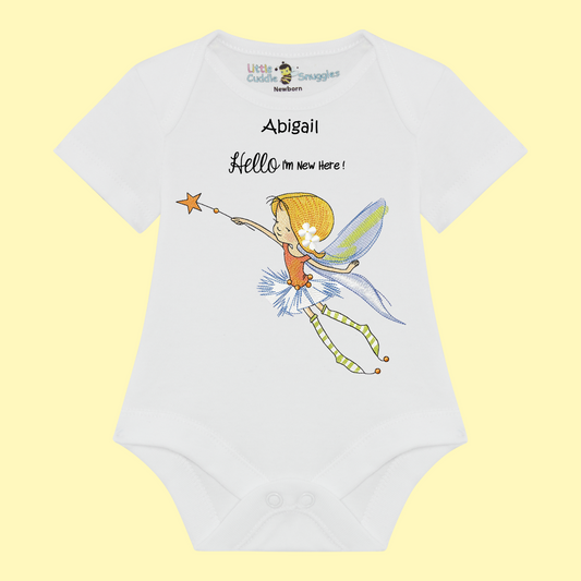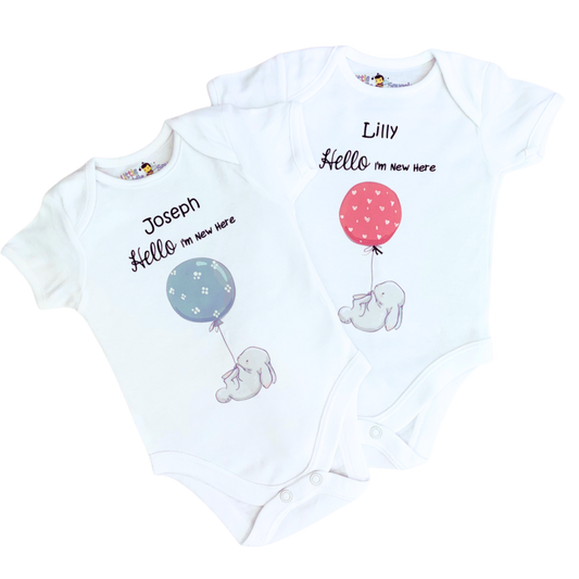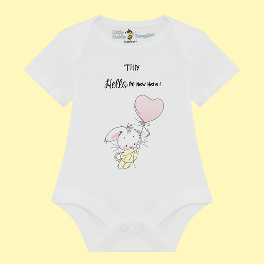 Bunny with heart balloon Baby bodysuit 'I'm New Here!'